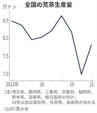 「国内市場は伸びておらず、収入が最盛期の半分以下になってしまっている茶農家もいる。『いいお茶だよね』と言われつつも、農家の生活は年々苦しくなっている」(茶業関係者)。